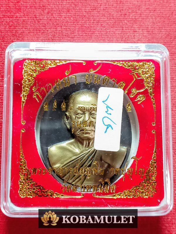 เหรียญชนะมาร ชนะจน บรอนซ์พิมพ์กลางกรอบทองระฆัง หลวงปู่บุญหนา ธมฺมทินฺโน วัดป่าโสตถิผล สกลนคร