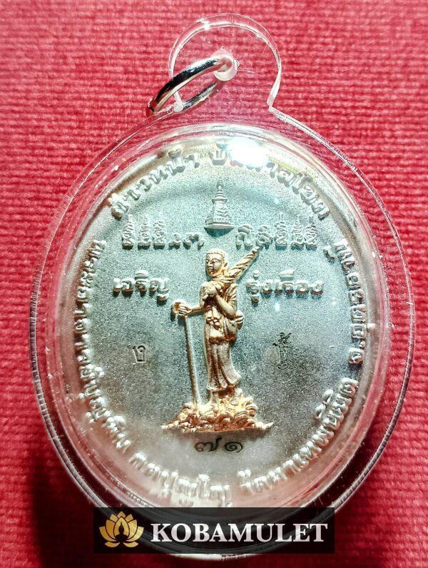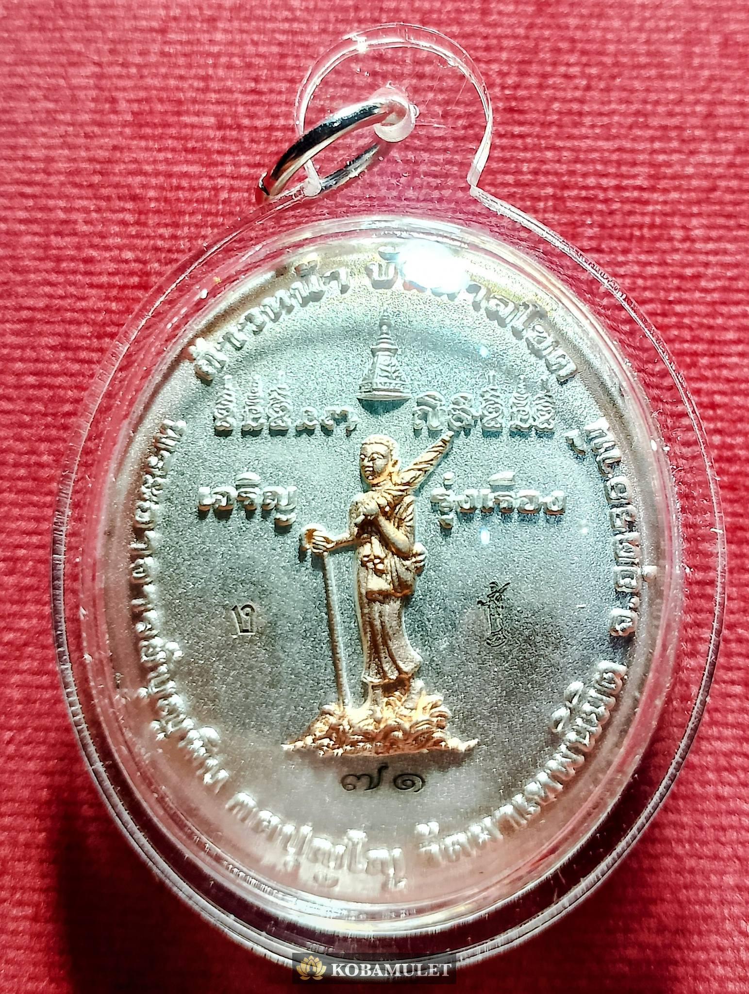 เหรียญหล่อก้าวหน้าบันดาลโชค หลวงปู่บุญพิน กตปุญโญ วัดผาเทพนิมิต เนื้อเงินสามกษัตริย์ หมายเลข ๗๑