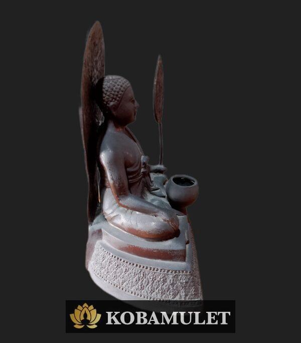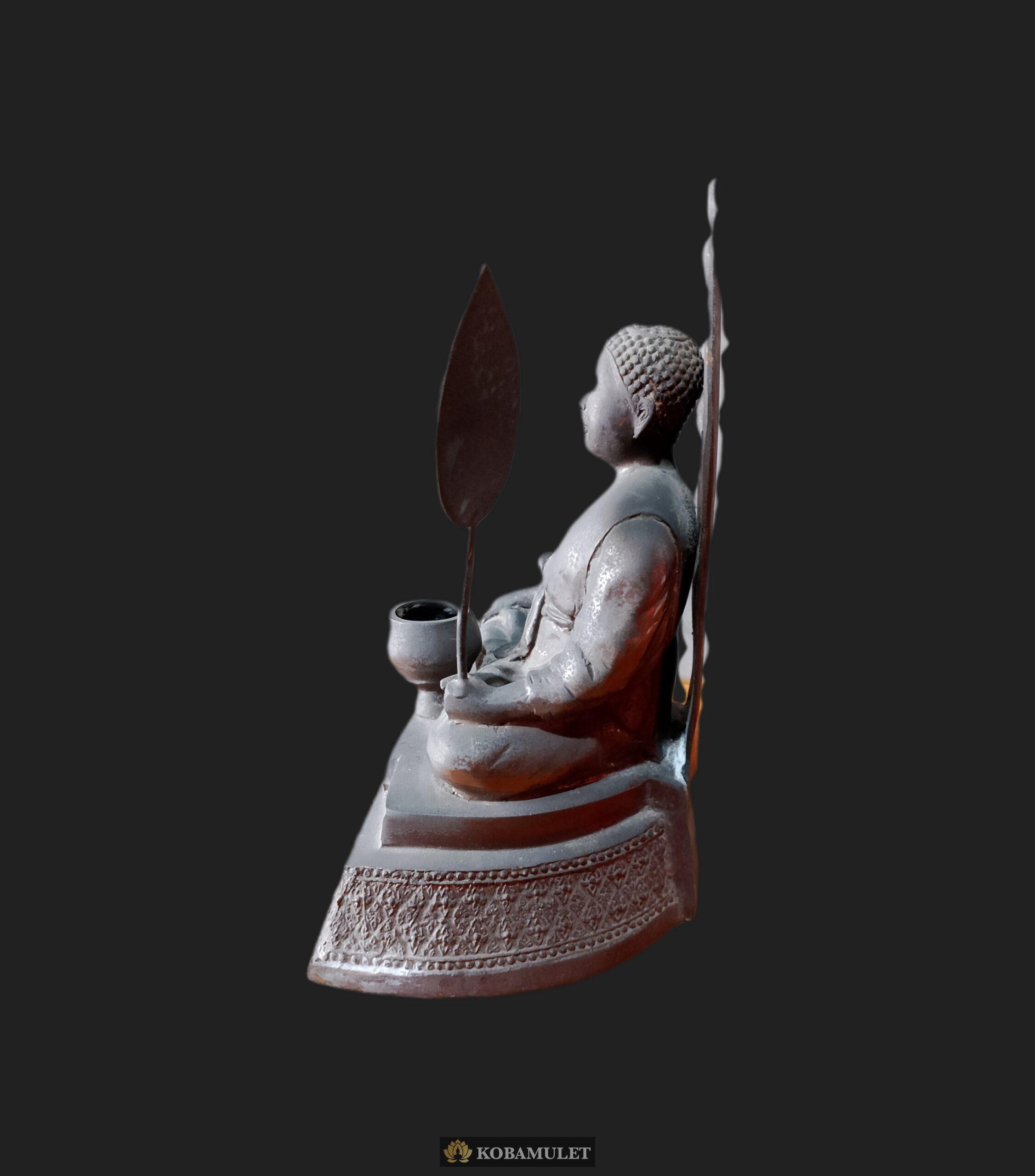 ขนาดหน้าตัก 5 นิ้ว ฐาน 7 นิ้ว สูง 10 นิ้ว เนื้อโลหะทองเหลืองผิวรมมันปู สวยสมบูรณ์
