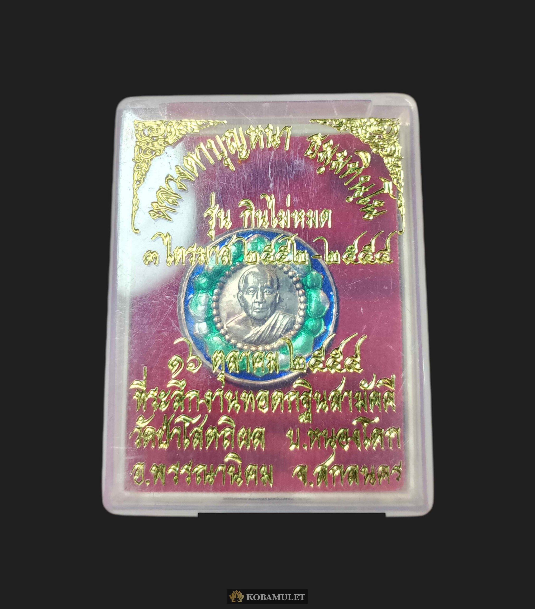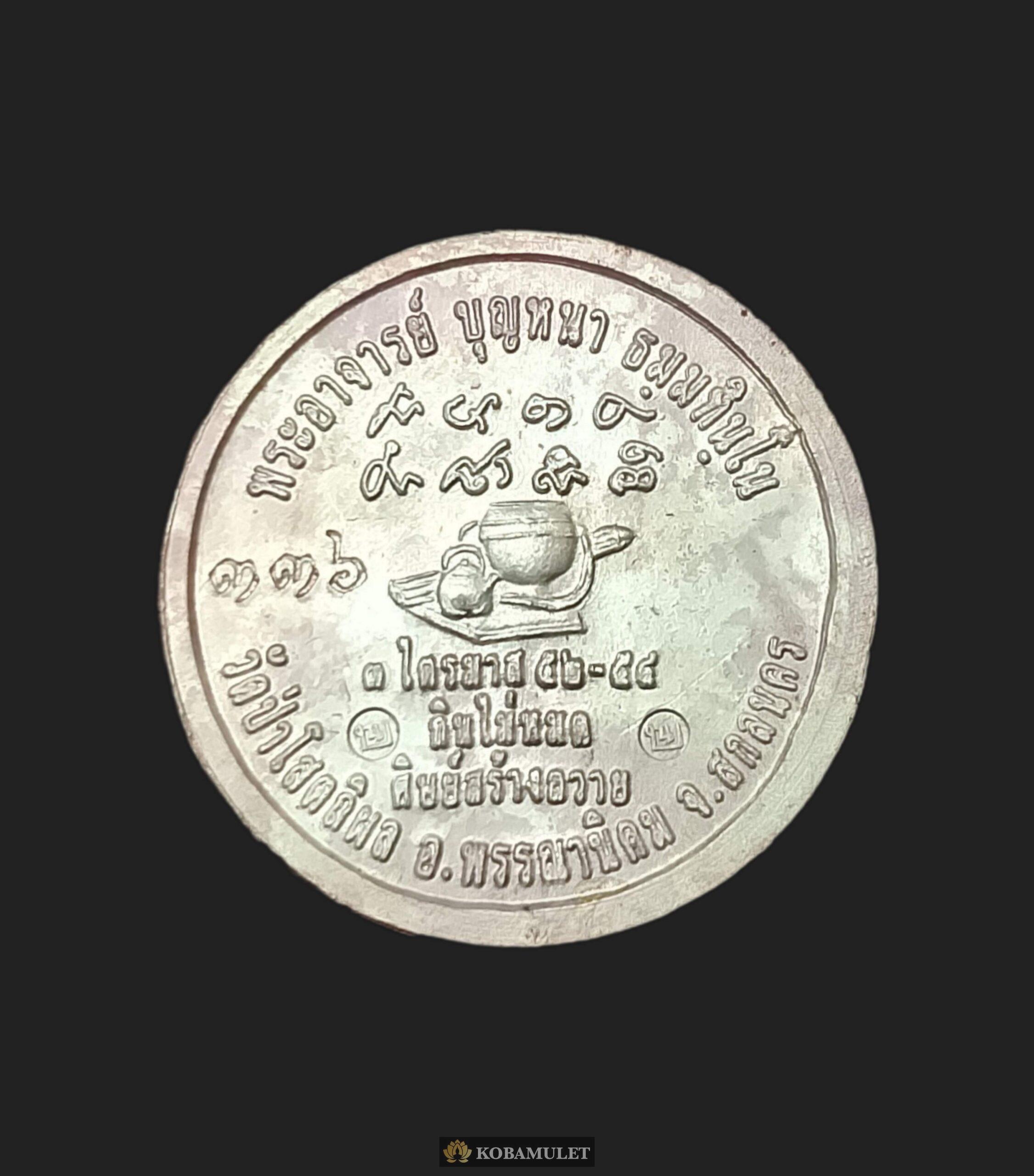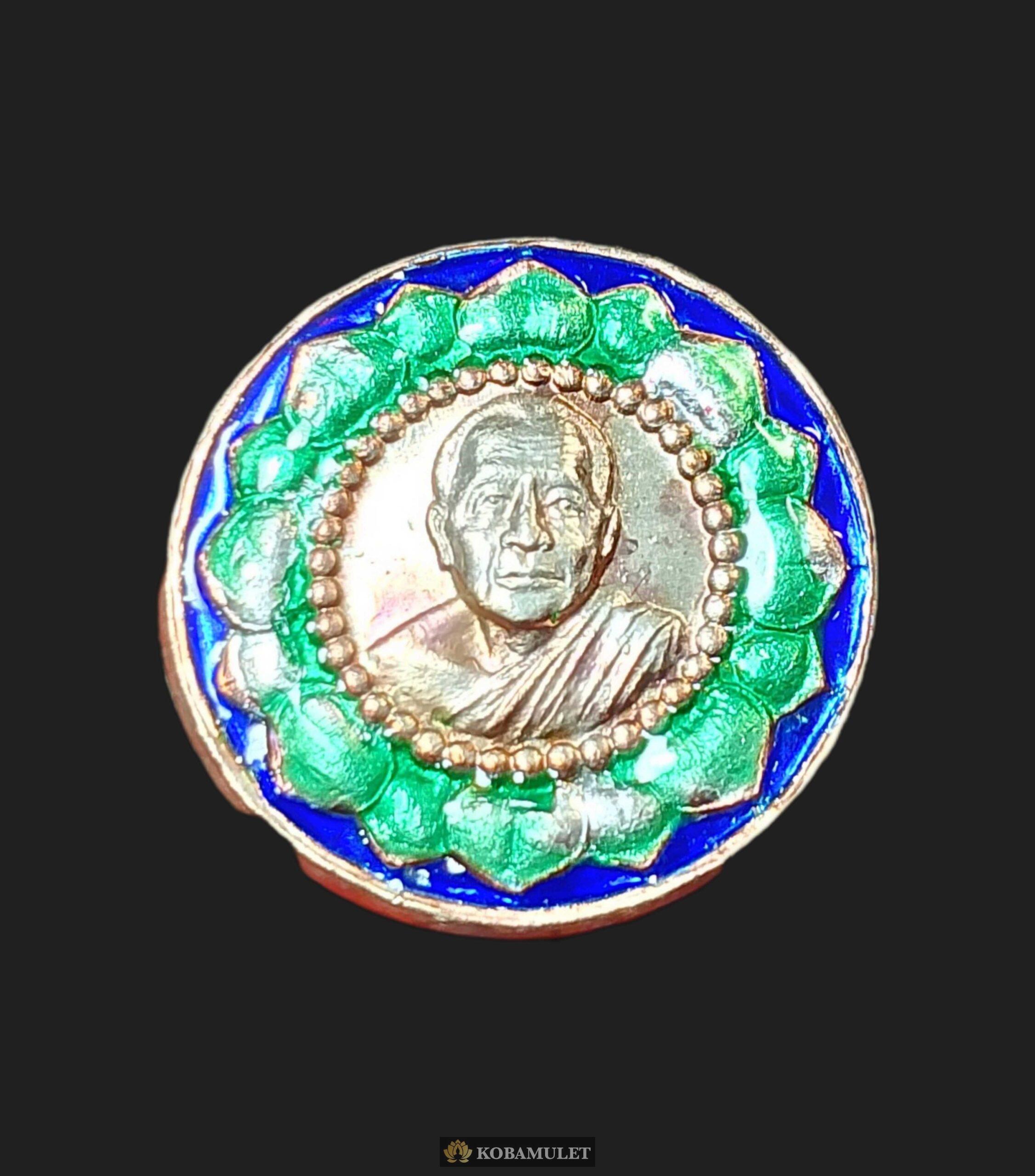 เหรียญหลวงปู่บุญหนา ธมฺมทินฺโน วัดป่าโสตถิผล สกลนคร เหรียญเหลือกินเหลือใช เนื้อเงินลงยาเขียว หมายเลข ๓๓๖