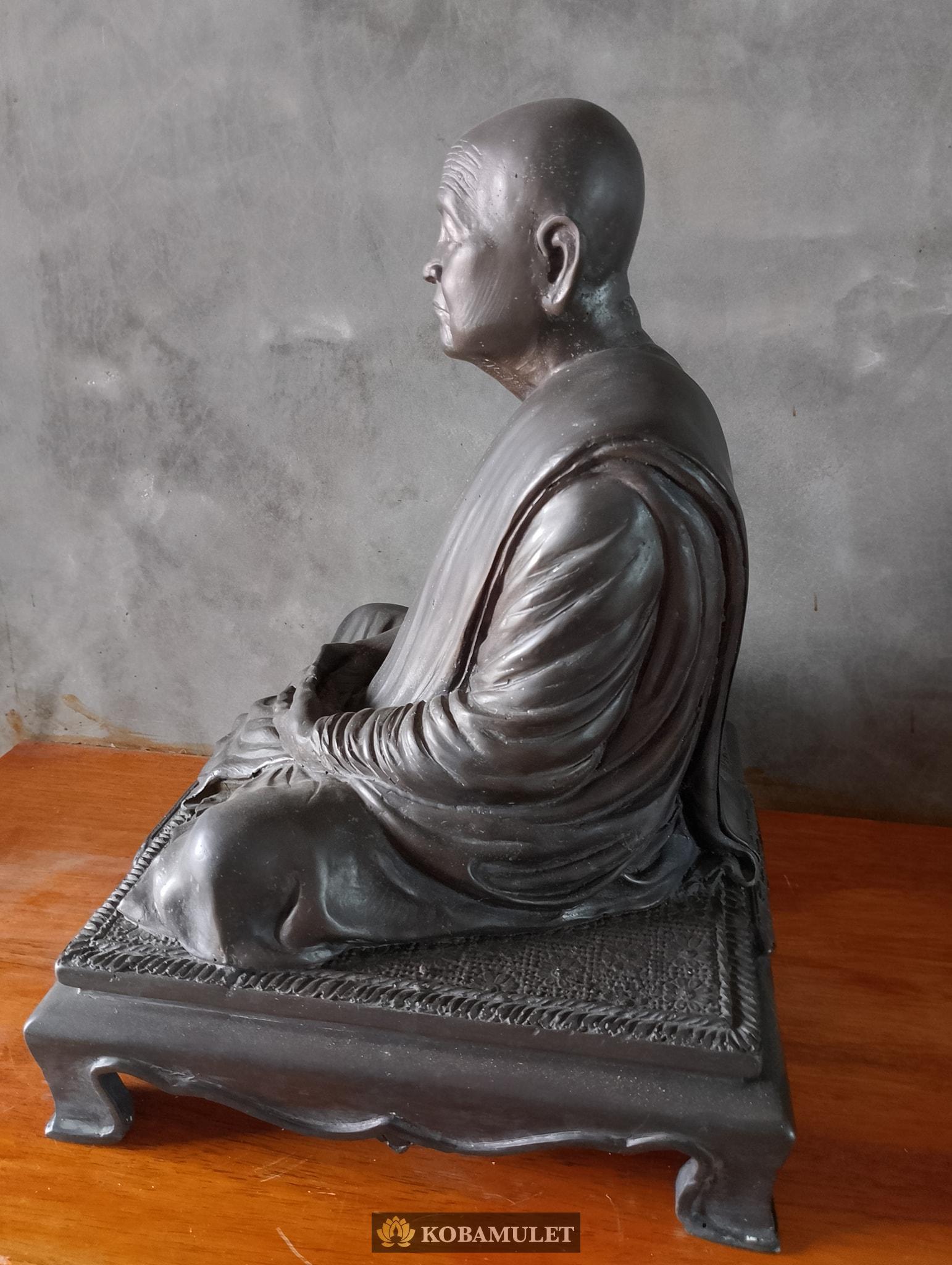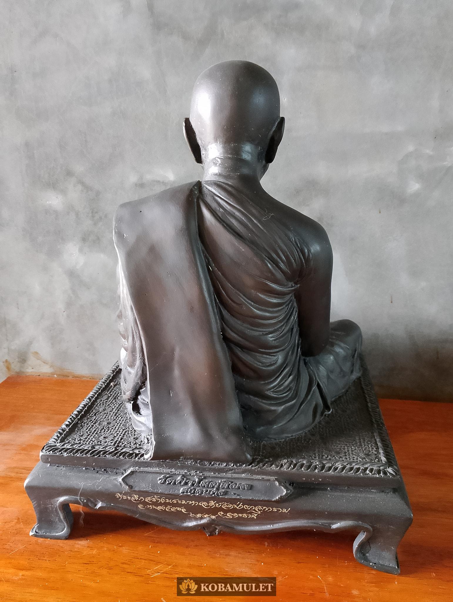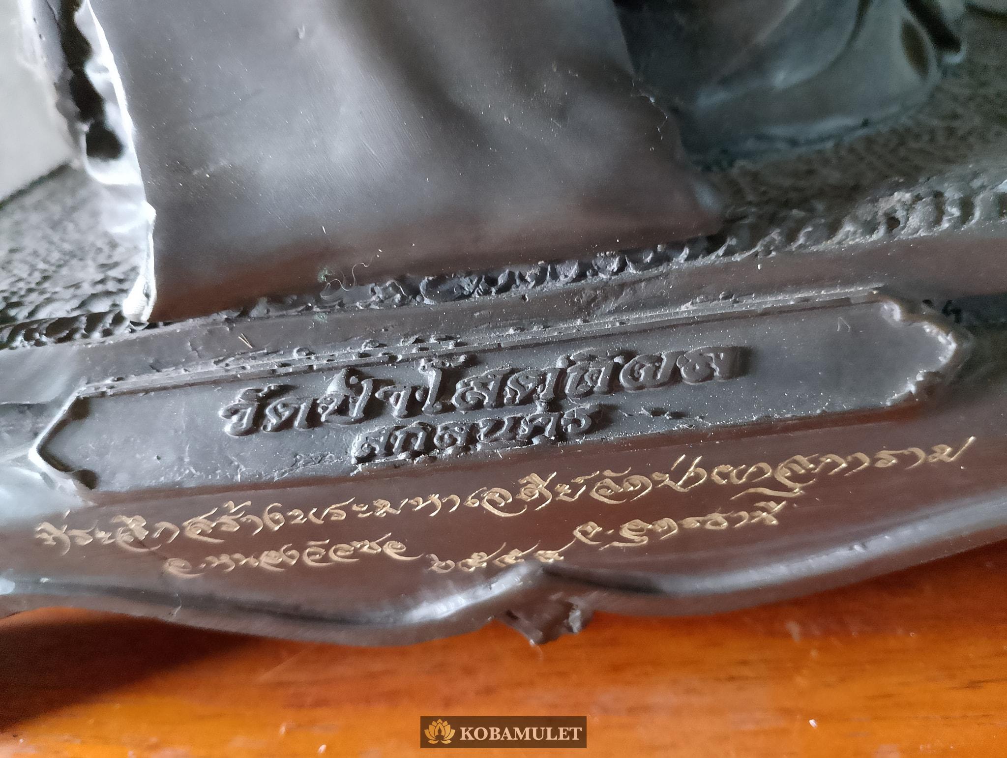 หน้าตัก ๙ นิ้ว ฐาน ๑๐ นิ้ว ฐานลึก ๙ นิ้ว สูงรวมฐาน ๑๒ นิ้ว ใต้ฐานติดเหรียญเจริญพร