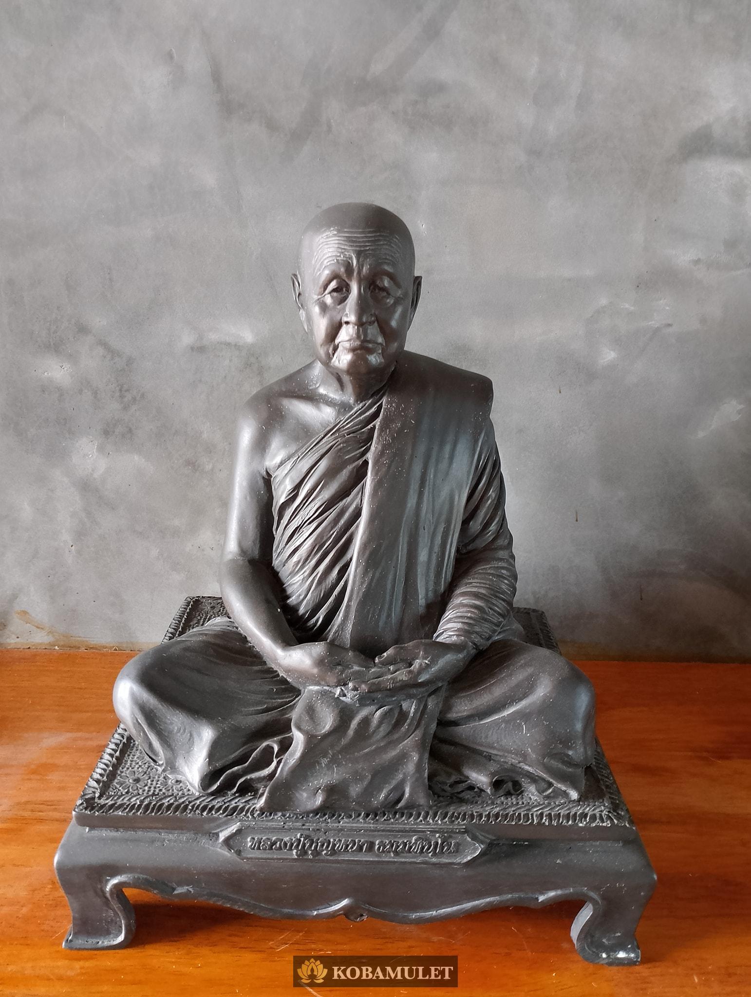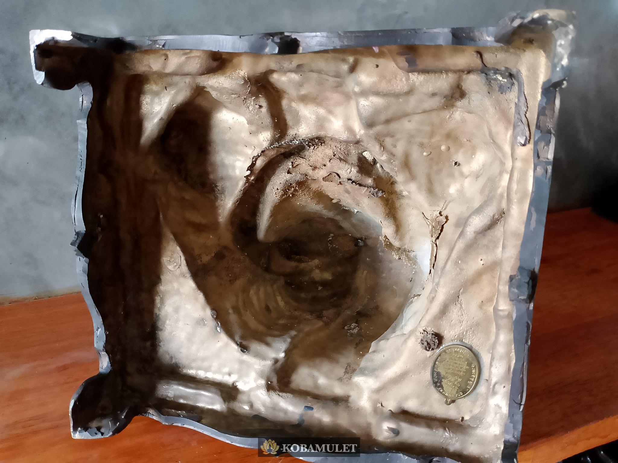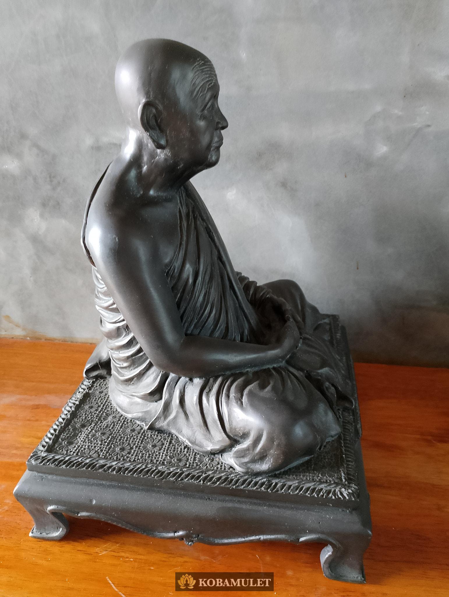 หน้าตัก ๙ นิ้ว ฐาน ๑๐ นิ้ว ฐานลึก ๙ นิ้ว สูงรวมฐาน ๑๒ นิ้ว ใต้ฐานติดเหรียญเจริญพร