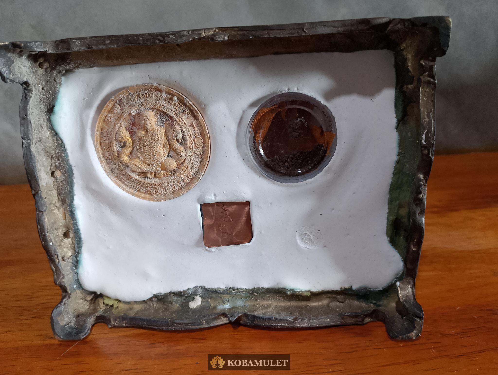 หมายเลข ๕๑๗ ใต้ฐานฝังพระผง แผ่นยันต์ มวลสาร