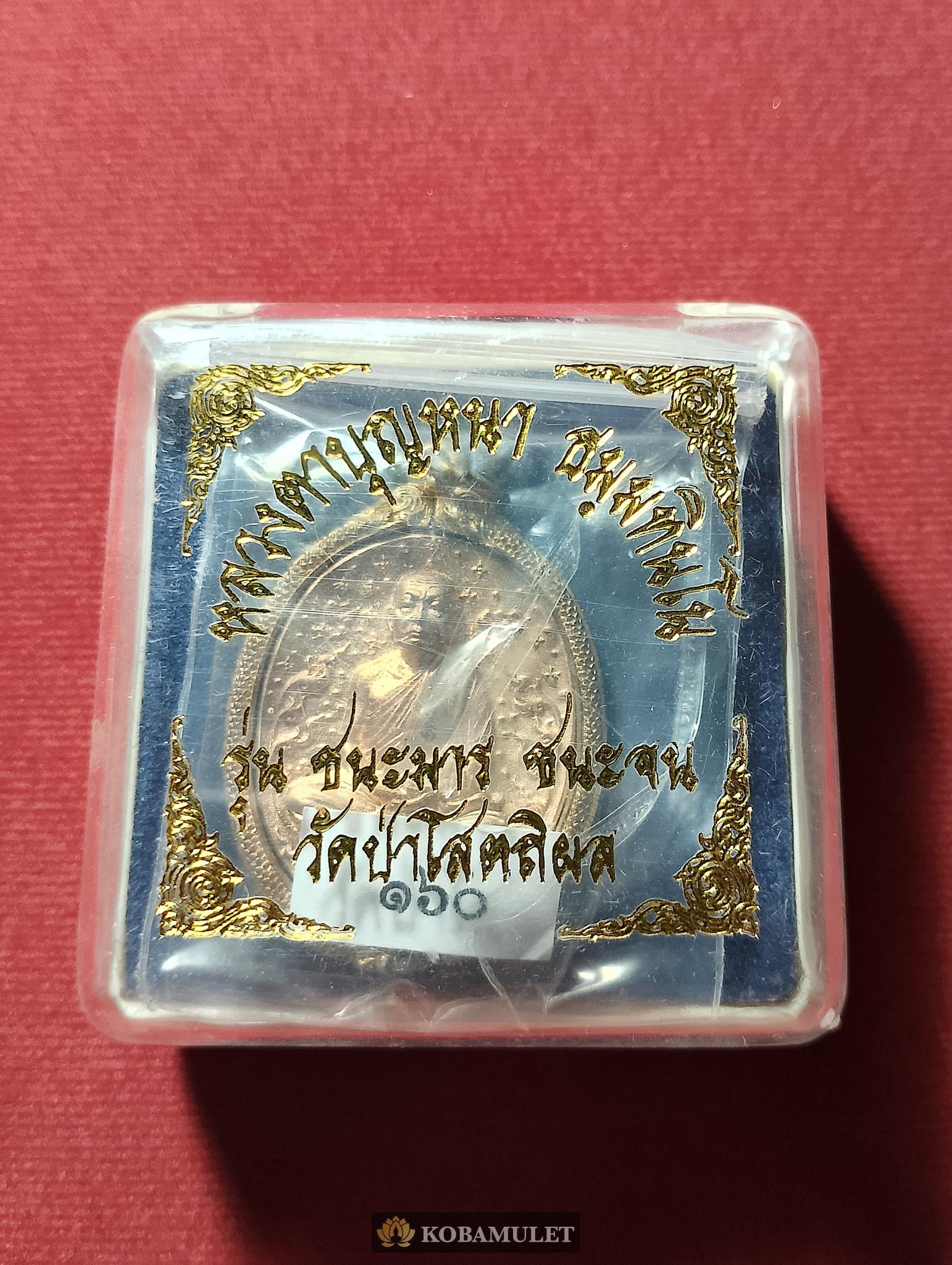 เหรียญชนะมาร ชนะจน พิมพ์กลางเนื้อบรอนซ์กรอบทองระฆัง หลวงปู่บุญหนา ธมฺมทินฺโน วัดป่าโสตถิผล สกลนคร