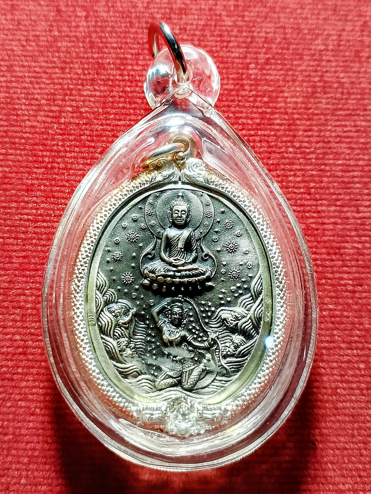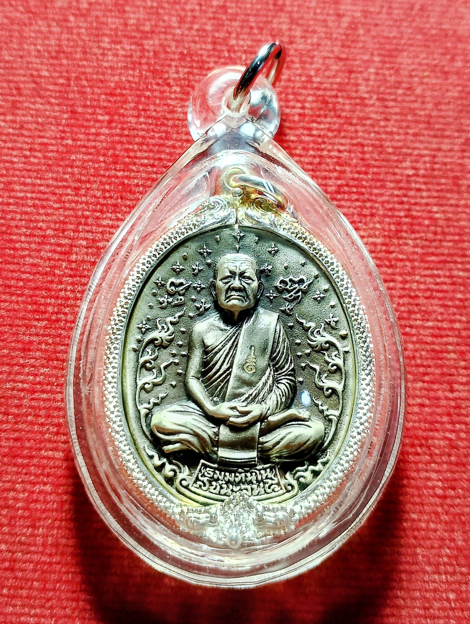 เหรียญชนะมาร ชนะจน หลวงปู่บุญหนา ธมฺมทินฺโน พิมพ์กลาง เนื้อเงินรมดำกรอบเงิน หมายเลข ๑๑กก