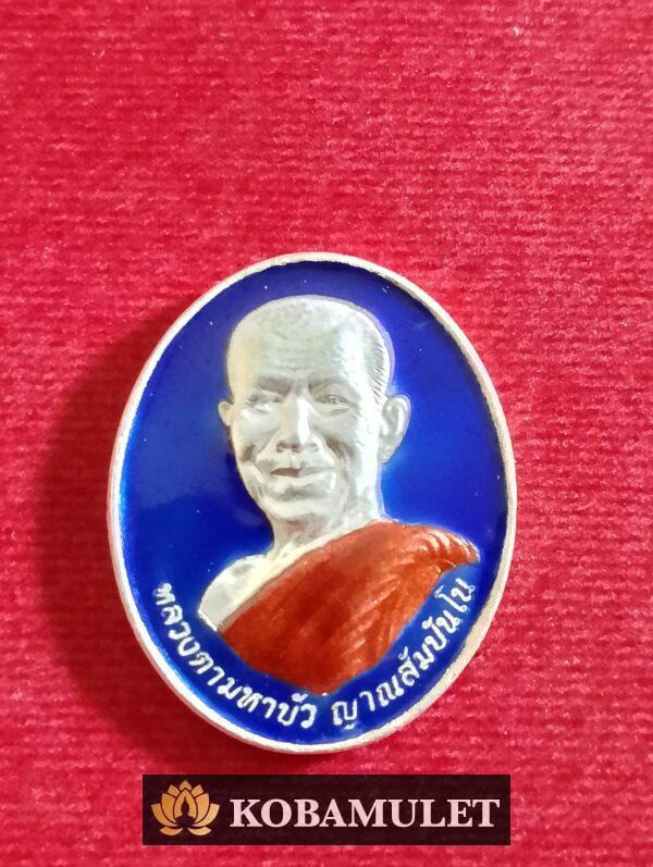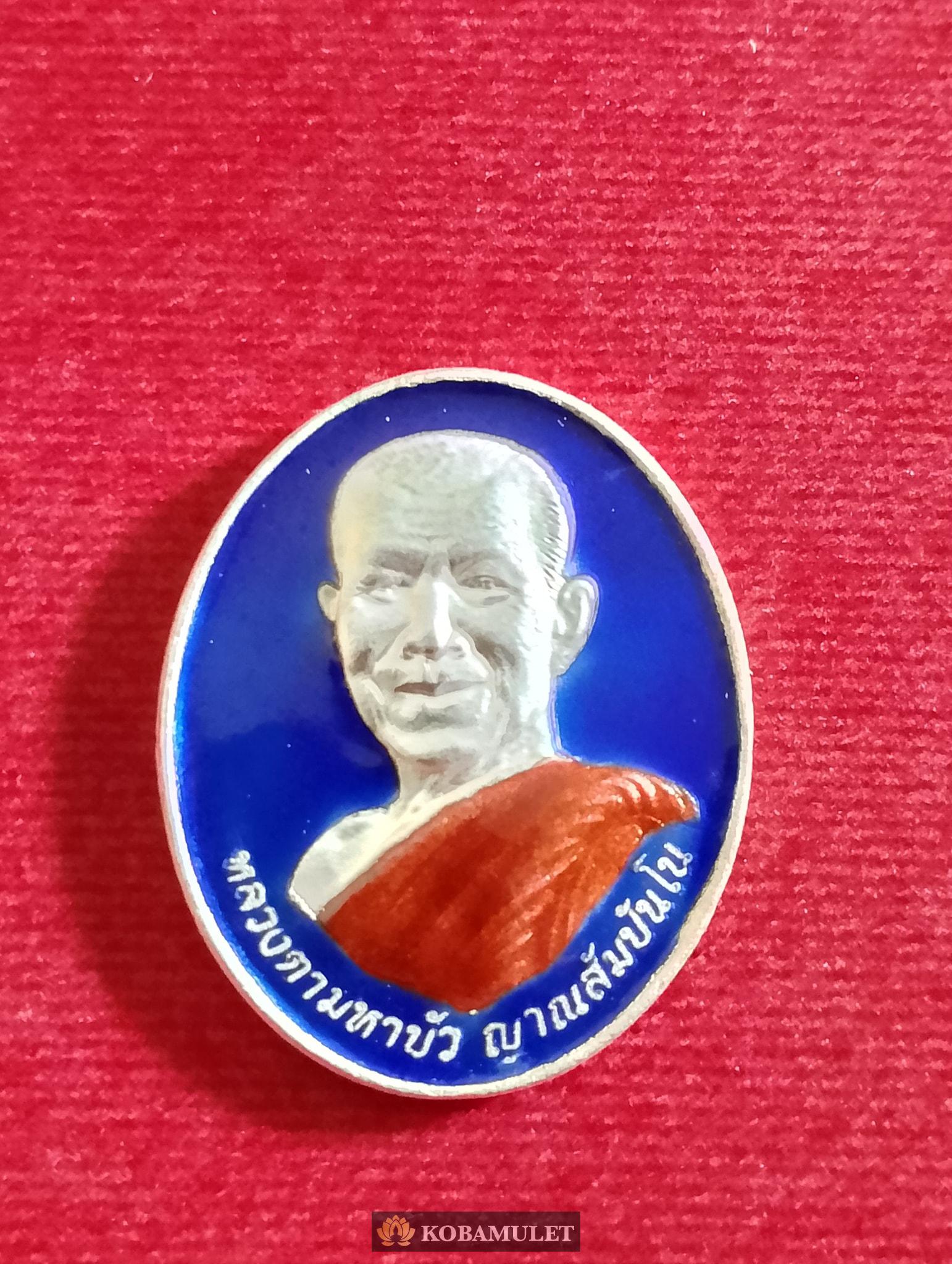เหรียญธรรมค้ำแผ่นดิน ๔๘ หลวงตามหาบัว ญาณสัมปันโน วัดป่าบ้านตาด อุดรธานี เนื้อเงินลงยาน้ำเงิน หมายเลข ๓๓