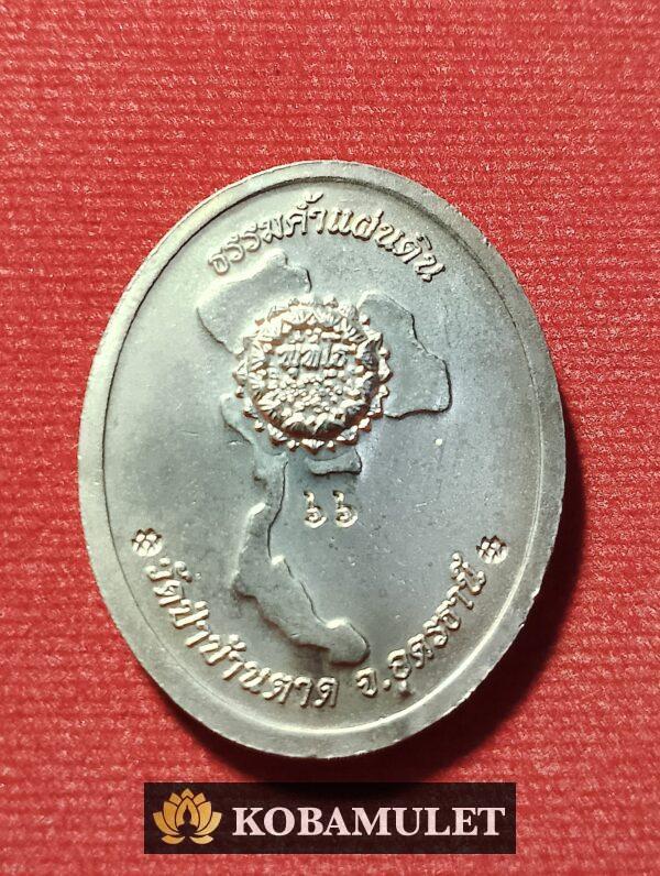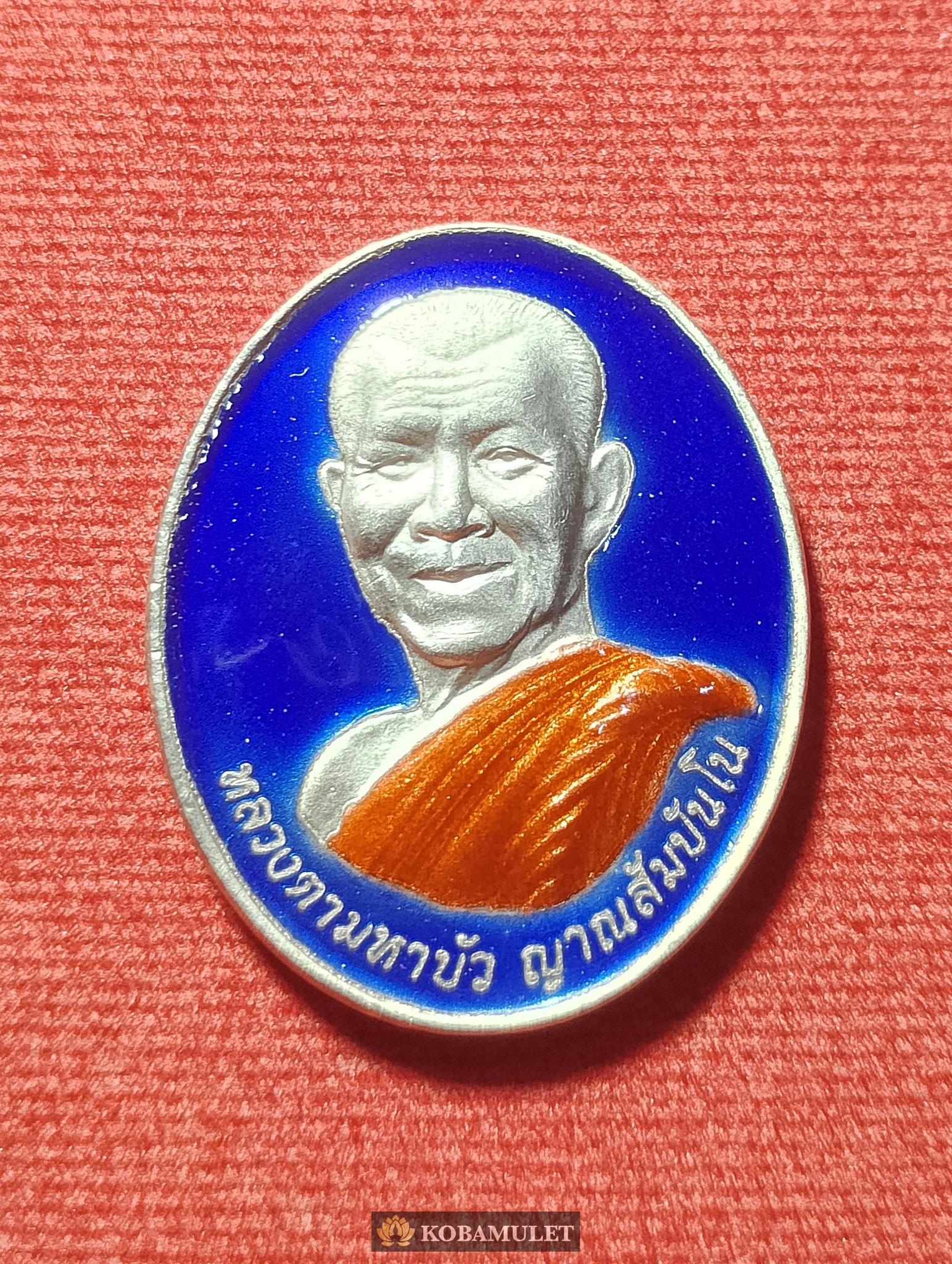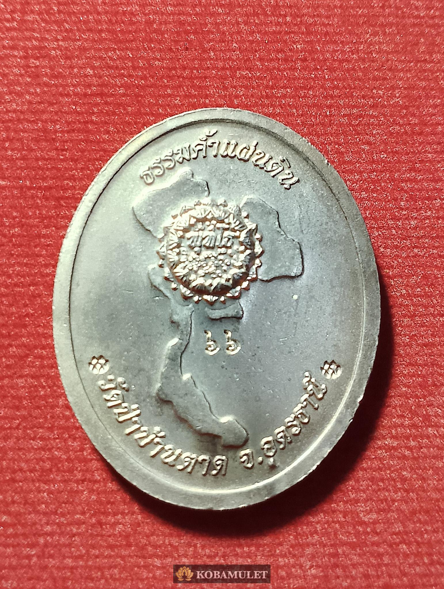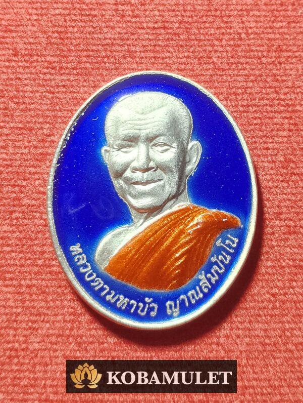 เหรียญธรรมค้ำแผ่นดิน ๔๘ เนื้อเงินลงยาน้ำเงินจีวรส้ม โค๊ทดอกบัวซ้ายขวา หมายเลข ๖๖ หลวงตามหาบัว ญาณสัมปัณโณ วัดป่าบ้านตาด อุดรธานี