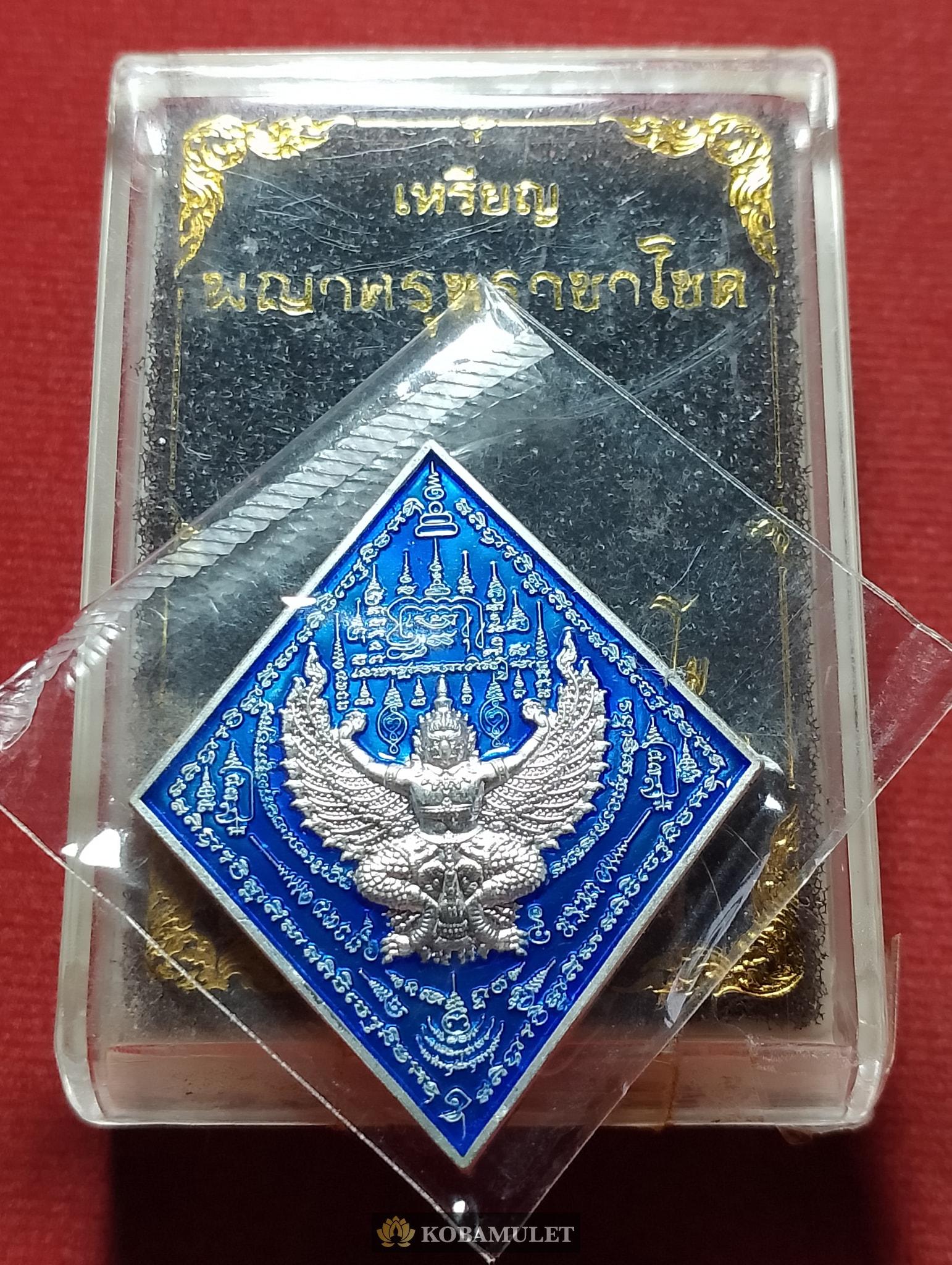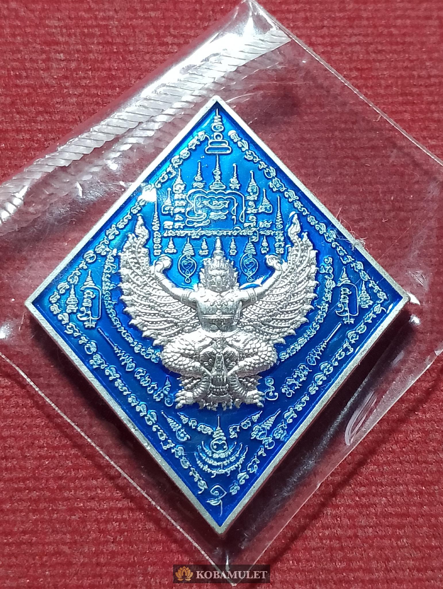 เหรียญพญาครุฑราชาโชค เนื้อเงินลงยาน้ำเงิน หลวงพ่อพัฒน์ ปุญญากาโม