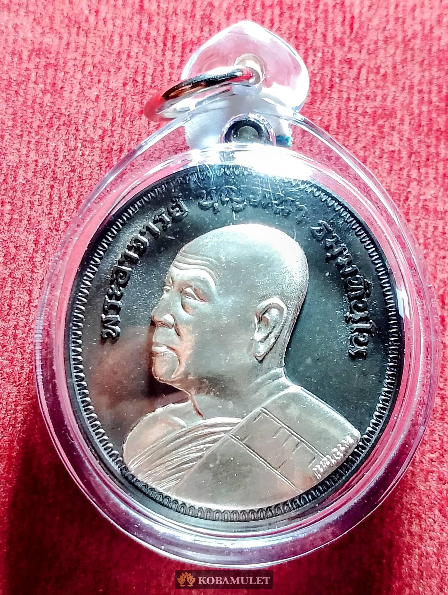 เหรียญพรปีใหม่ หลวงปู่บุญหนา ธมฺมทินฺโน วัดป่าโสตถิผล สกลนคร นวะหน้ากากเงิน หมายเลข ๓๓