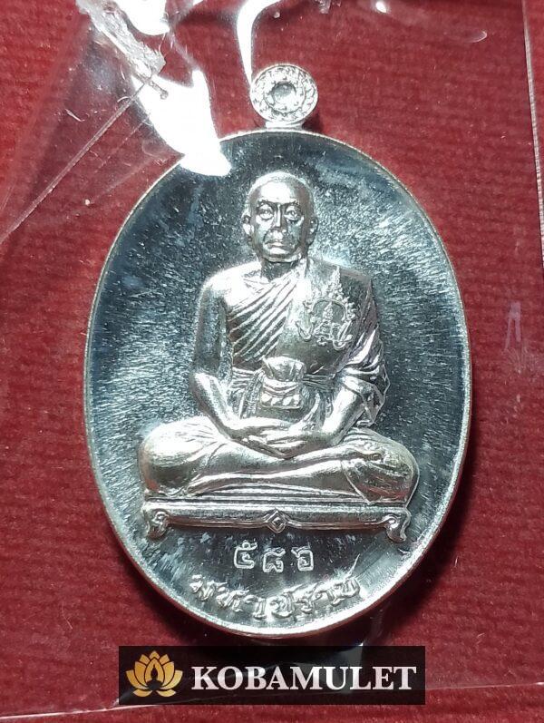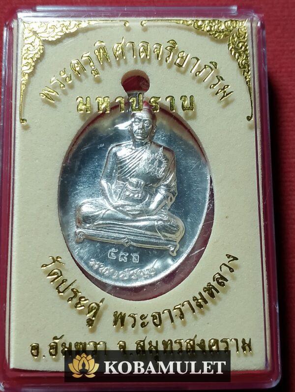 เหรียญมหาปราบ หลวงพ่อพระมหาสุรศักดิ์ วัดประดู่พระอารามหลวง สมุทรสงคราม เนื้อเงิน หมายเลข ๕๘๖