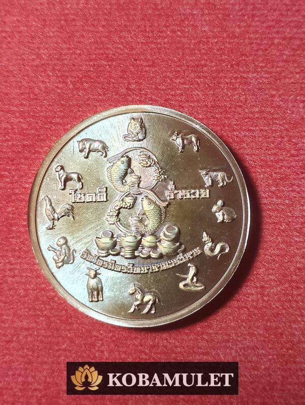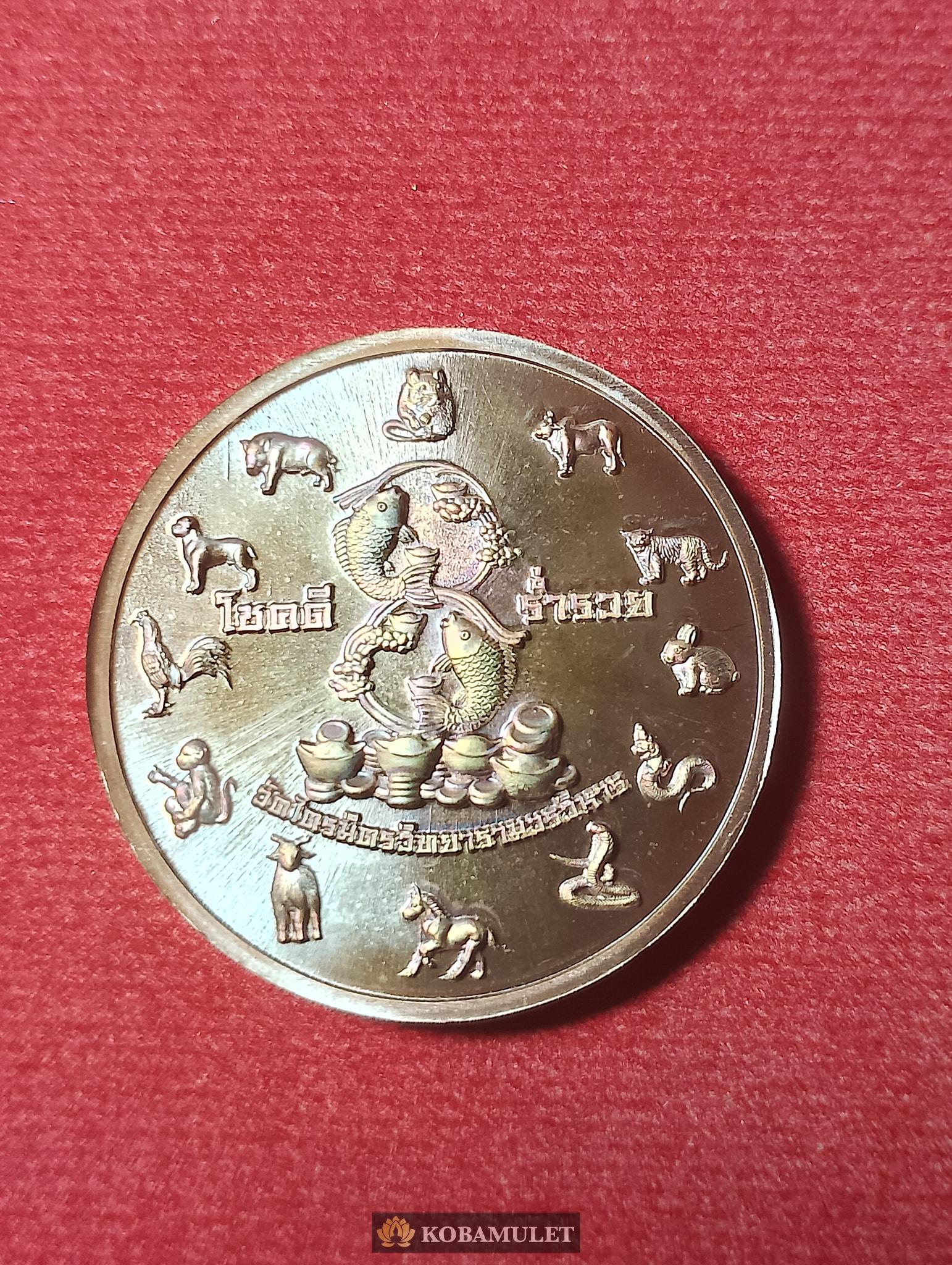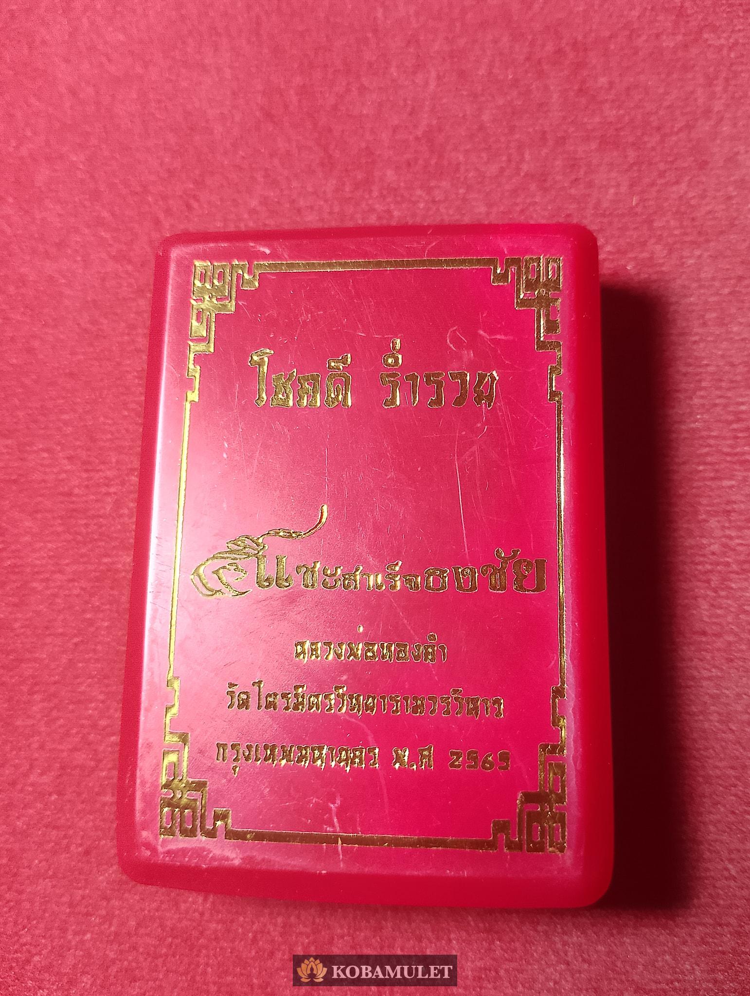 เหรียญหลวงพ่อทองคำ โชคดี ร่ำรวย ๕ แชะสมเด็จธงชัย วัดไตรมิตรวิทยาราม