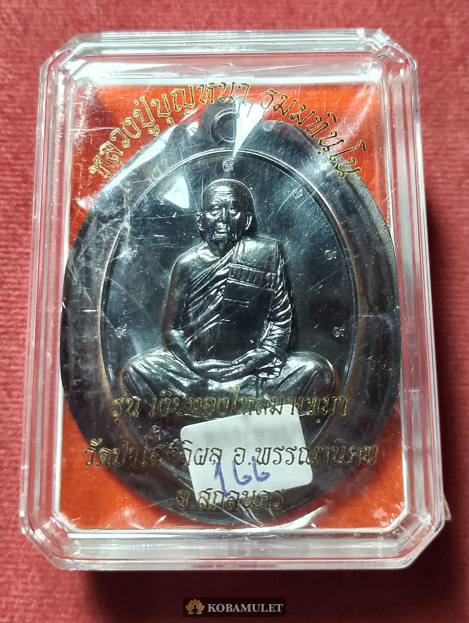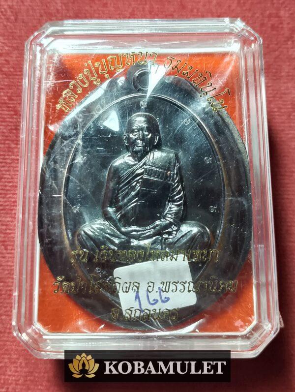 เหรียญเงินทองไหลมาเทมา หลวงปู่บุญหนา ธมฺมทินฺโน วัดป่าโสตถิผล สกลนคร ชนวนไม่ตัดปีกตอก ๙ รอบ หมายเลข ๑๖๖