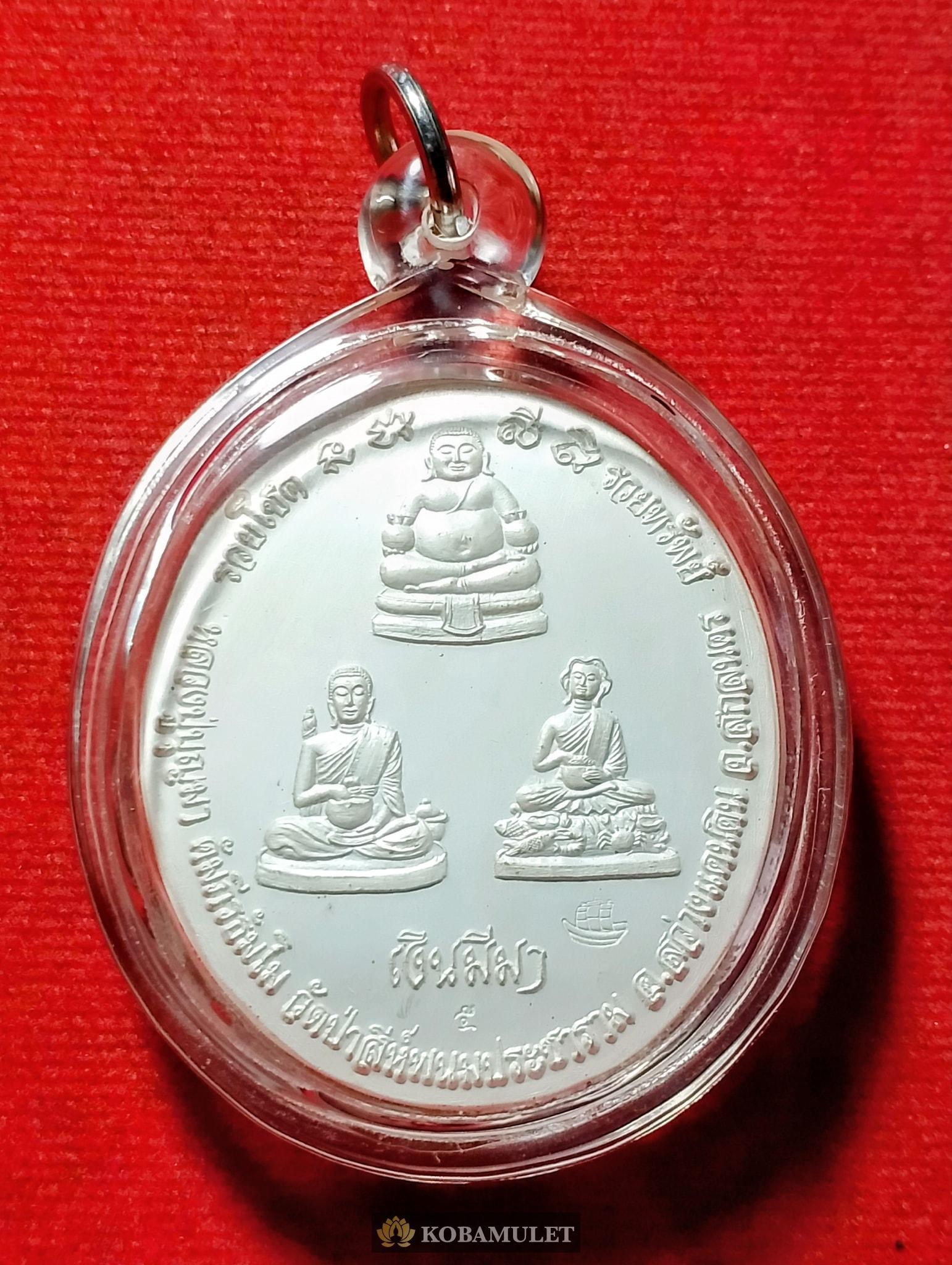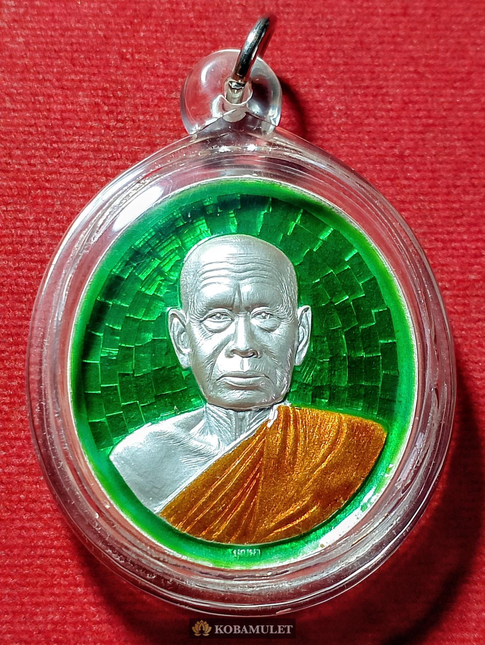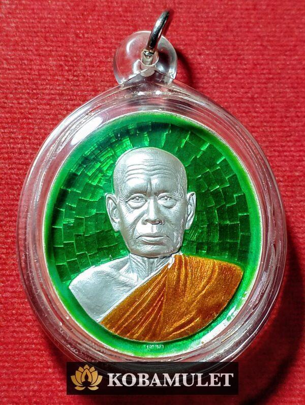 เหรียญเงินมีมา เนื้อเงินลงยาเขียว หมายเลข ๕ หลวงปู่บุญมา คัมภีรธัมโม