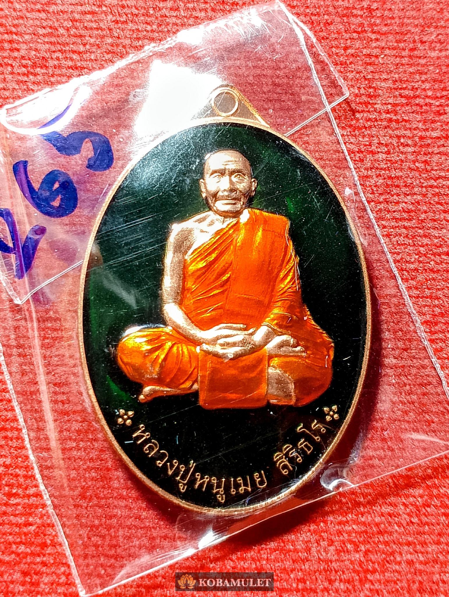 เหรียญ ดี หลวงปู่หนูเมย สิริธโร ทองแดงลงยาเขียว หมายเลข ๒๖๕